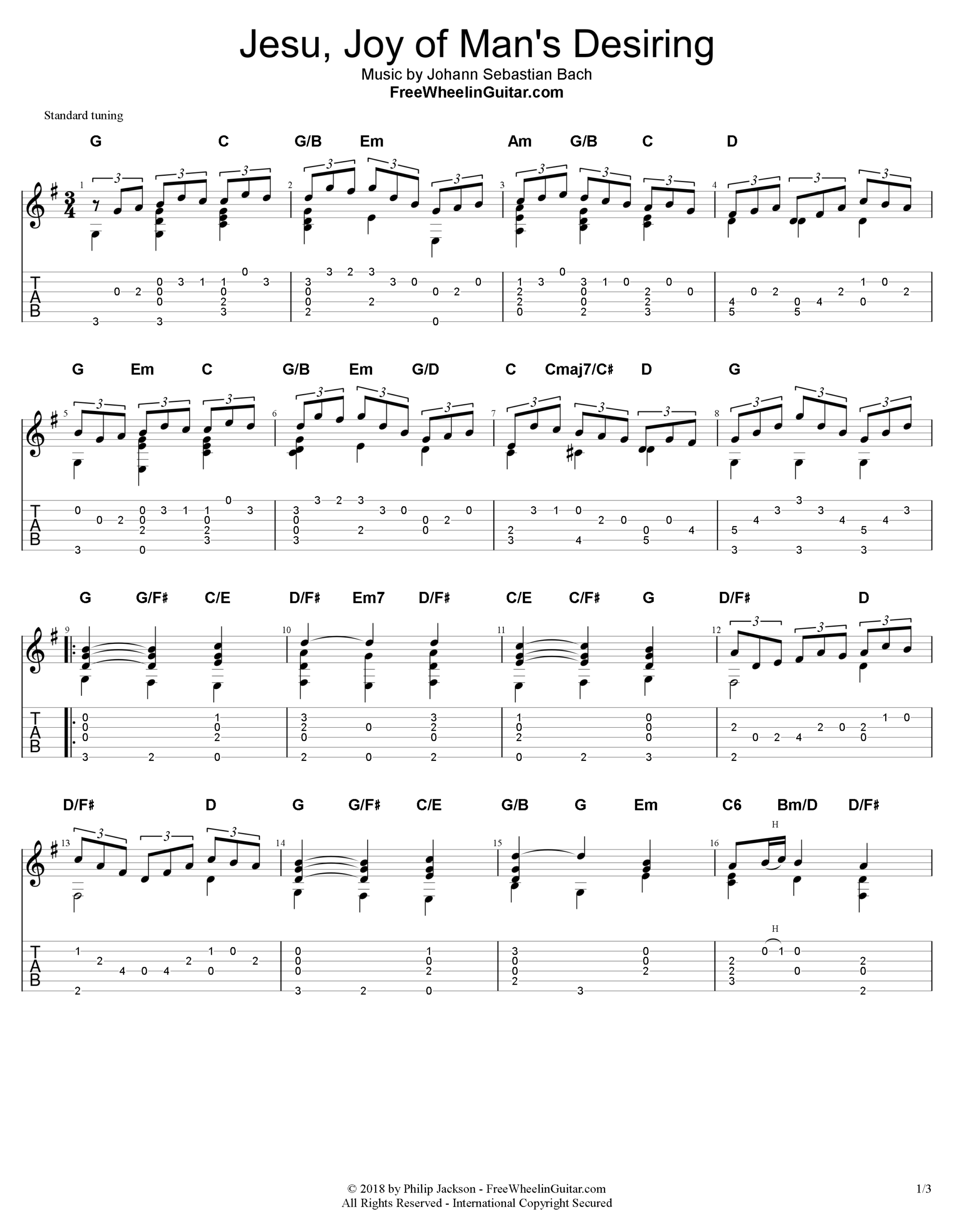 “Jesu, Joy of Man’s Desiring” Solo Guitar Tab (3 Pages). Download as a PDF.