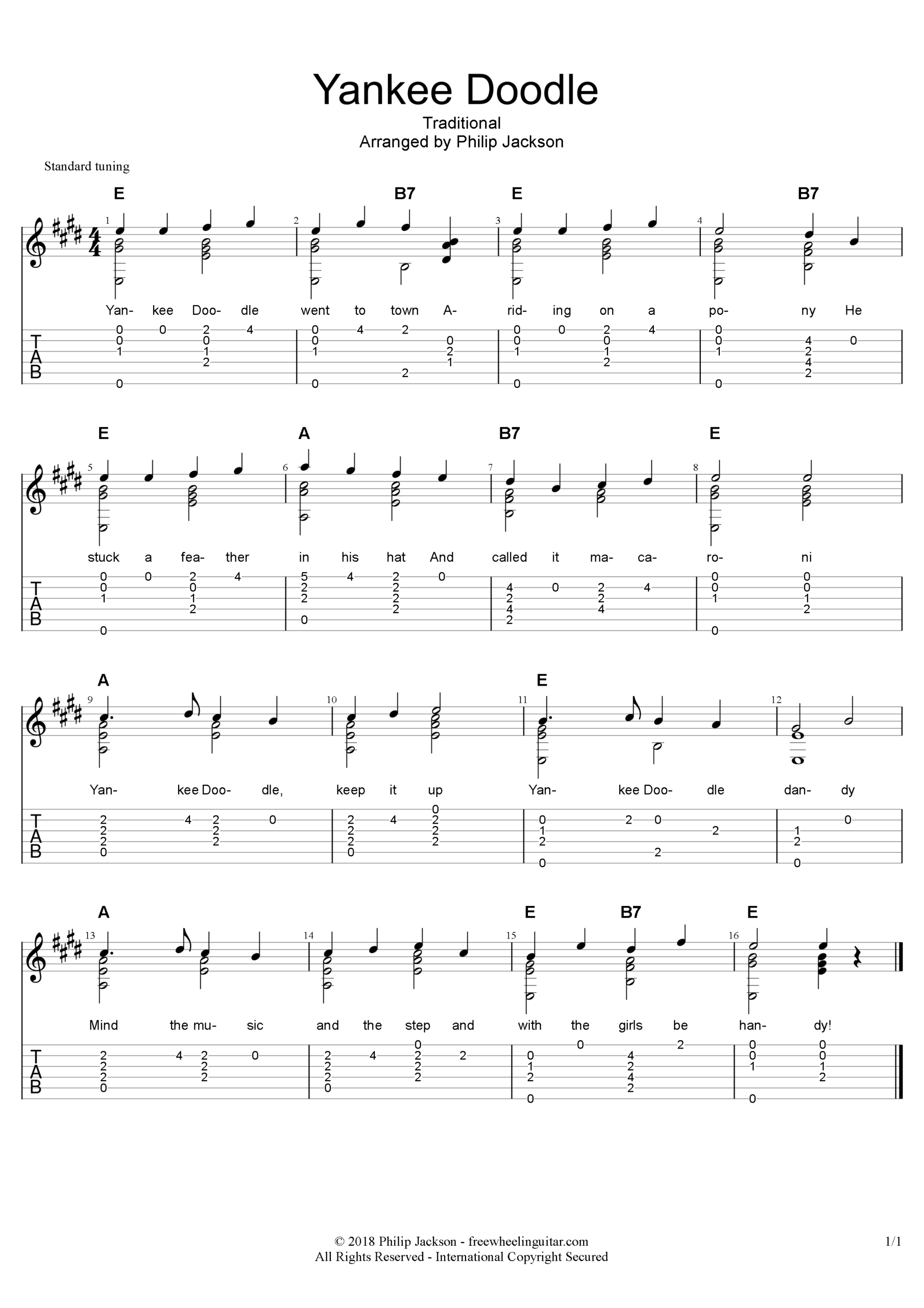 “Yankee Doodle” Solo Guitar Tab (1 page). Download as a PDF.